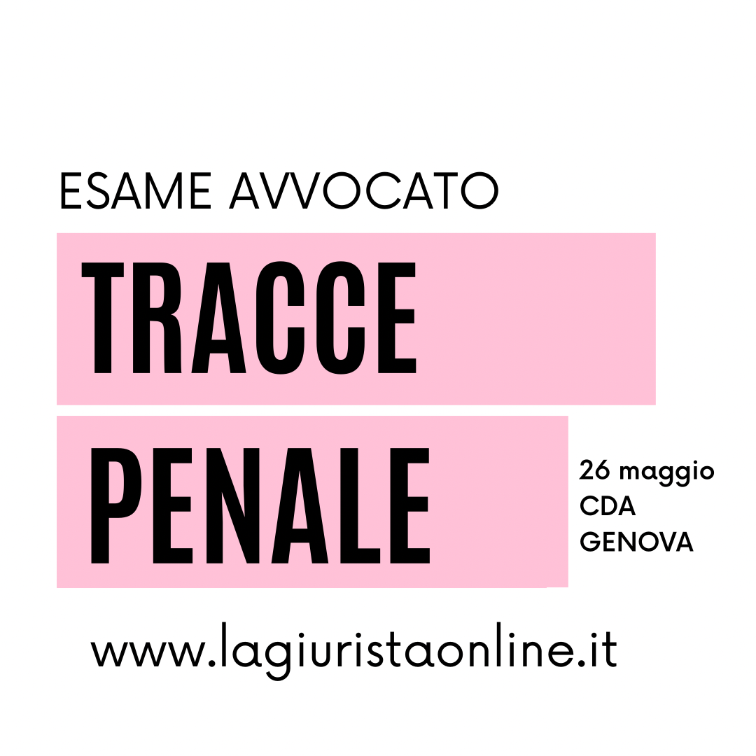Esame Avvocato 2020 – I orale – Tracce di diritto penale – 27/05/2021 Scritto il 28 Maggio 202129 Maggio 2021 Pubblicato inDIRITTO PENALE Scorrere verso destra per sfogliare le tracce.